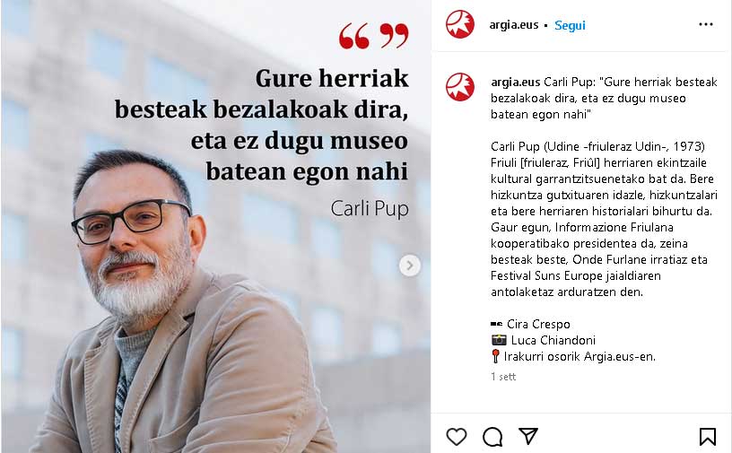 Il profîl Instagram de ARLeF… cuintri dal status de lenghe furlane